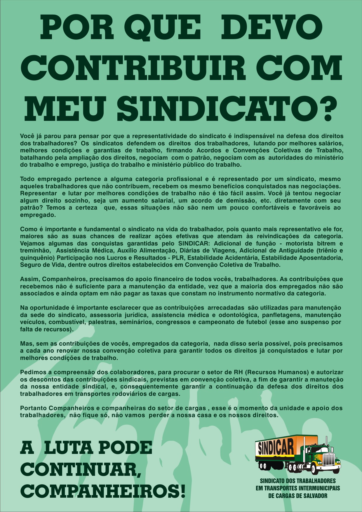Mas a vida em sociedade tem caráter de um jogo em aberto, que exige fôlego para continuar permanentemente correndo e lutando para mudar o resultado.A história mostra que os oprimidos e derrotados constroem suas respostas, sempre!
